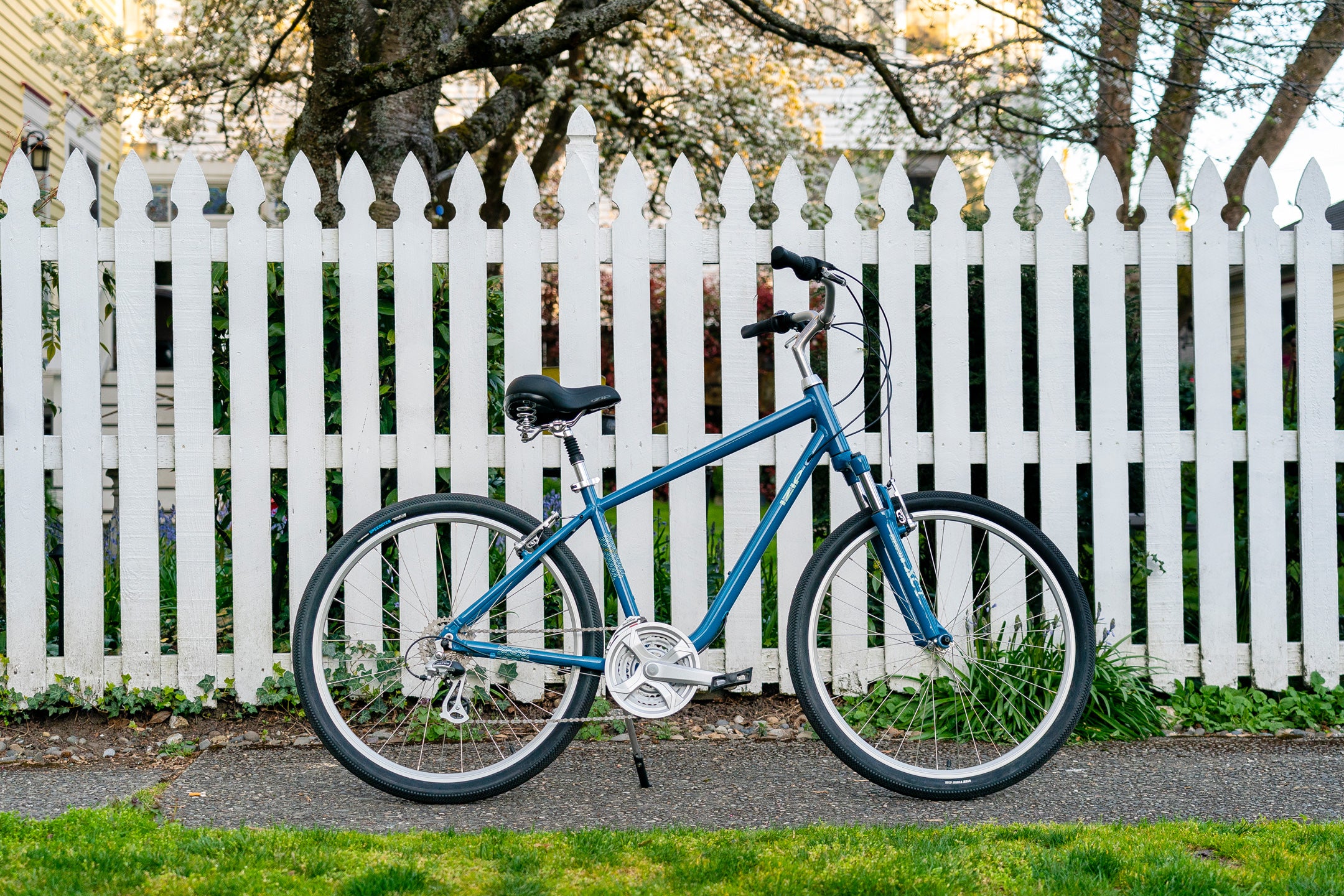 When it comes to riding bikes, the IZIP Zest is as comfy as it gets and offers the traditional look of a double-diamond bike frame. Whether cruising the boardwalk, the campground or the bike path, this comfort bike is the definition of easy riding. The Zest puts the rider in an upright yet laid-back position for maximum comfort on the bike. Large 27.5 × 1.95 tires and a Suntour front suspension fork allow you to roll over the bumps with ease while keeping your speed up. Pedals with no-slip grip add to the all-day comfort, while classy graphics and reflective details add a refined look. Venture into a new level of comfort on the bike with the Zest Step Over.